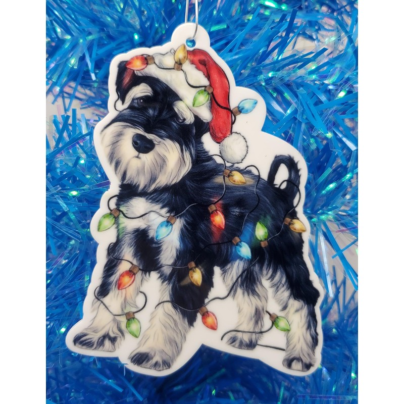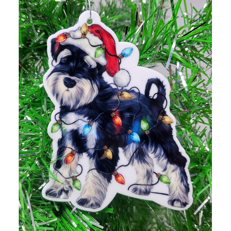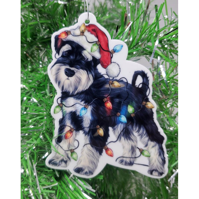 Miniature Schnauzer Dog Ornament with Santa Hat and Christmas Lights