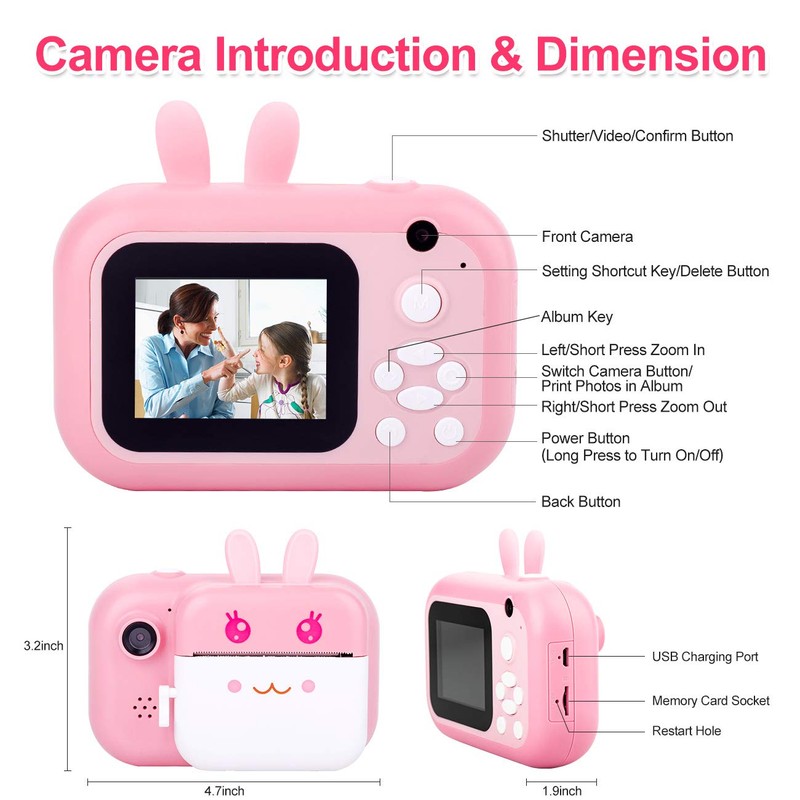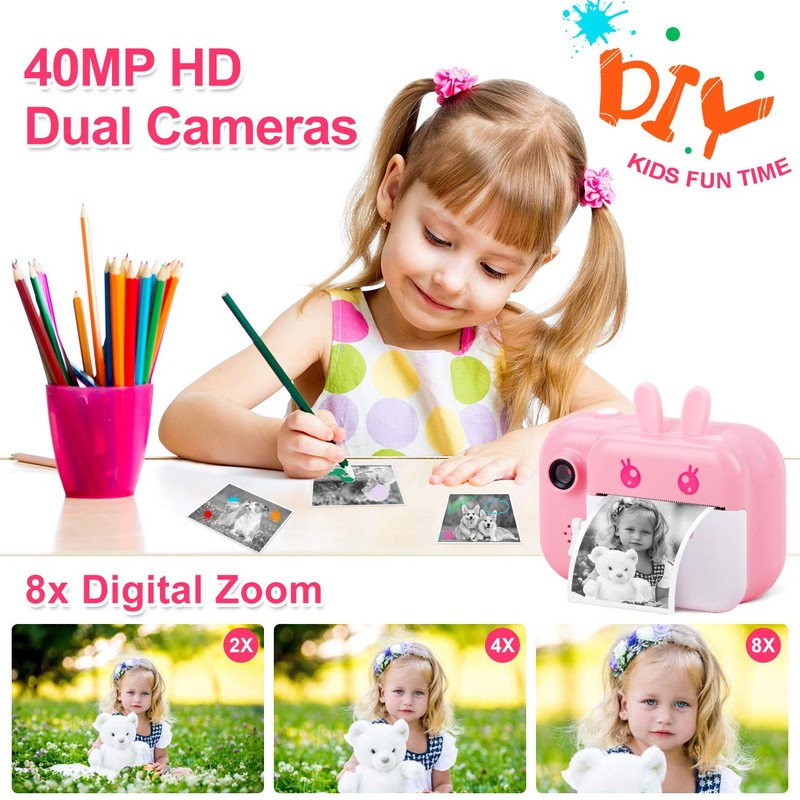 • 🎅【BEST GIFT FOR BOYS AND GIRLS】Kids instant camera suitable for little kids at age 3-14 years old girls and boys holiday/Christmas/birthday gift. The printed black and white photos can be used for DIY by children. Stimulate their imagination and creativity. Instant camera not only record photos at birthday parties or Christmas, but also supports video recording