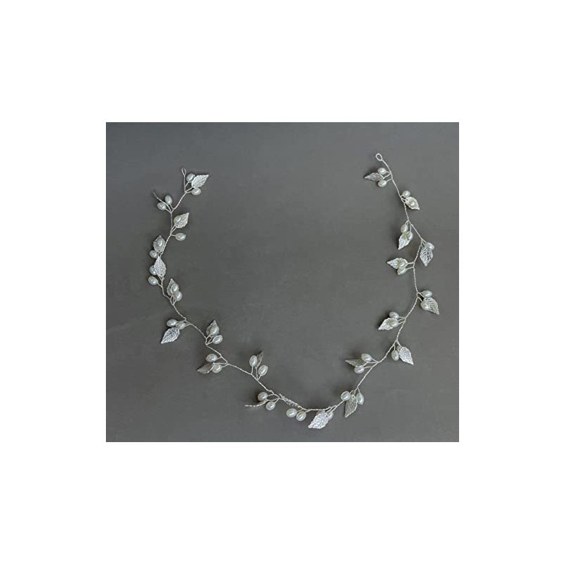 MINICO Bride Wedding Hair Vine Pearl Hair Piece Bridal Hair Accessories Headband for Women and Girls Silver