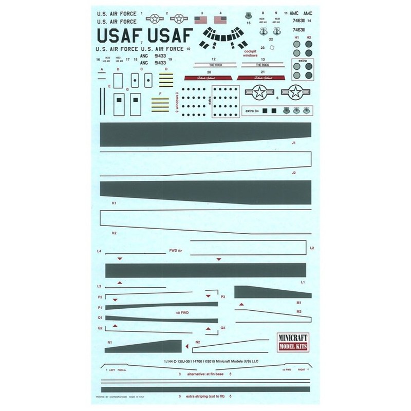 - 2 Marking options included; USAF C130J-30, 463d Airlift Group, Little Rock AFB, AR, USA, 2007 USAF C130J-30, 143d Air Wing, Rhode Island ANG, 2007