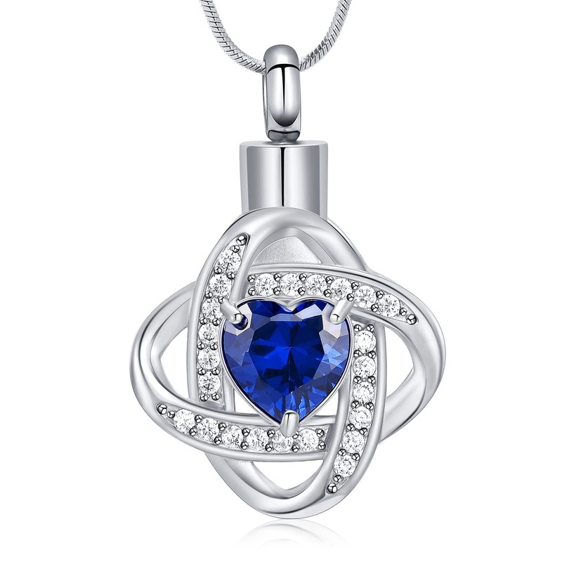 Minicremation Cremation Heart Urn Necklace Ashes Love Heart Pendant Birthstone Necklace Jewellery Gifts for Women Girl Keepsake Pendant Memorial Locket Ash (Silver-Blue)