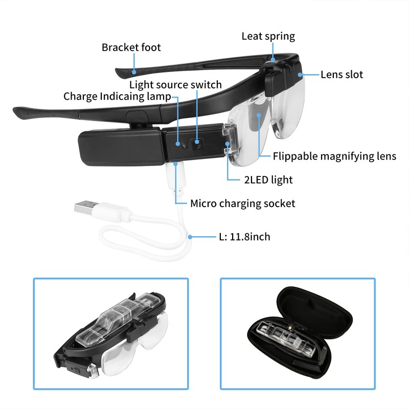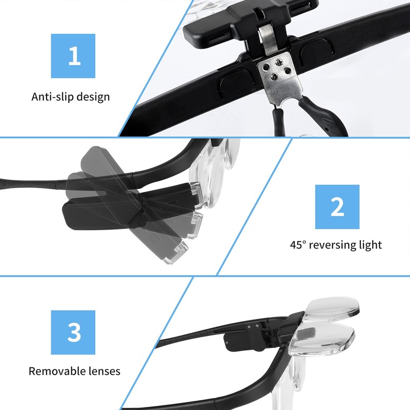 • Funcionamiento manos libres: diseñado para mayor comodidad, esta lupa para diadema es manos libres. La lupa tiene una almohadilla nasal suave y un marco antideslizante, lo que permite a los usuarios trabajar con ambas manos mientras disfrutan de los beneficios de aumento e iluminación.