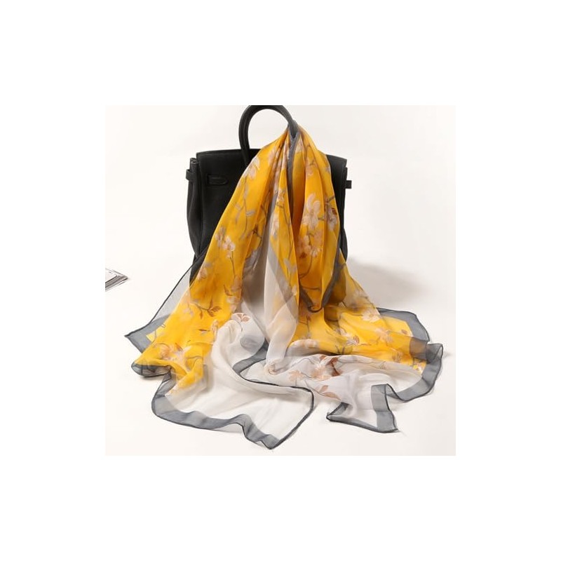 MINIDORA Lightweight Scarves for Women Elegant Floral Pattern Scarf Shawls Sunscreen Head Shawls, Style 5-yellow, One Size