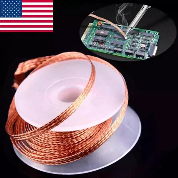 - 1 Rolls Copper Solder Wick Desoldering Braid 2.0mm Wide with - Desoldering braid (wick) is a copper braid used in the rework and repair of printed circuit boards, computers, cell phones or other electronics. - This wick is made from oxygen free copper - Lets you easily remove the extra solder from components or pads on the circuit board - Just press the braid onto the connection with a hot soldering iron - This will soak up the copper waste super clean - Length: 5FT (1.5M) - Width: 2.0 mm