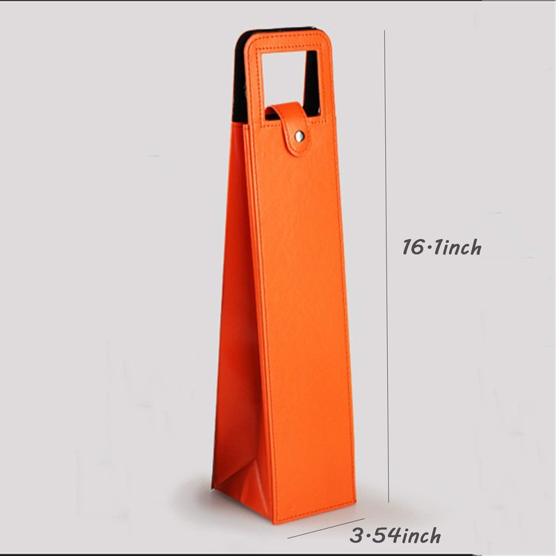 MINIDUO Wine Tote Carrier Bag, Single Bottle Wine Leather Wine bag with Handles,Reusable,Orange