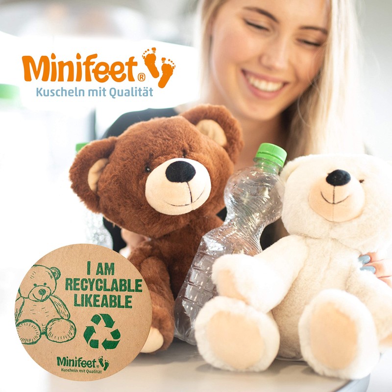 Minifeet Recycled Bear, Sustainable Cuddly Toy Teddy Bear Made from 100% Recycled PET Bottles, Plush Toy, Gift for Children, Baby, Girl, Boy, Birthday, Christmas, Advent Calendar