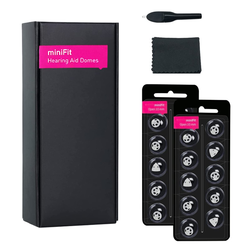 MiniFit Open Dome 10mm Ear Tips for Oticon Hearing Aids with Multifunction Cleaning Brush Tools Kit