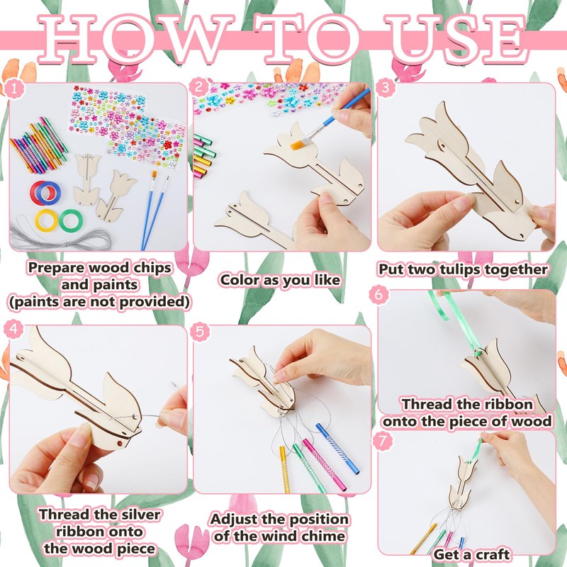 - Nice Crafting Gift: enjoy the fun of creation with our wind chime kit; With tulip wood chips, chime tubes, stickers, and multiple colors of ribbons, you can make your own home decoration to gift or keep