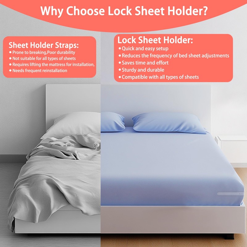 - Innovative and Stable Design: Features a unique upgraded design. Compared with traditional sheet straps, it has a stronger grip, ensuring that bed sheets remain firmly in place throughout the night without slipping or shifting.