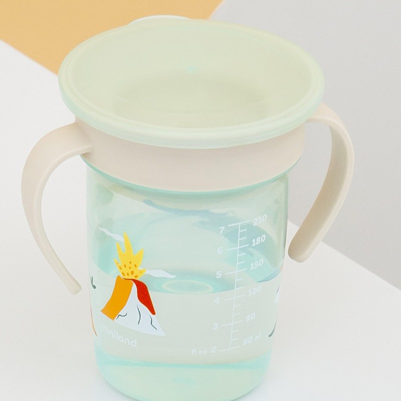 Miniland - 360º Spill-Proof Training Cup for Babies, Sippy Cup with Handles and Lid, Dishwasher Safe, BPA-Free, 270ml (Jurassic)