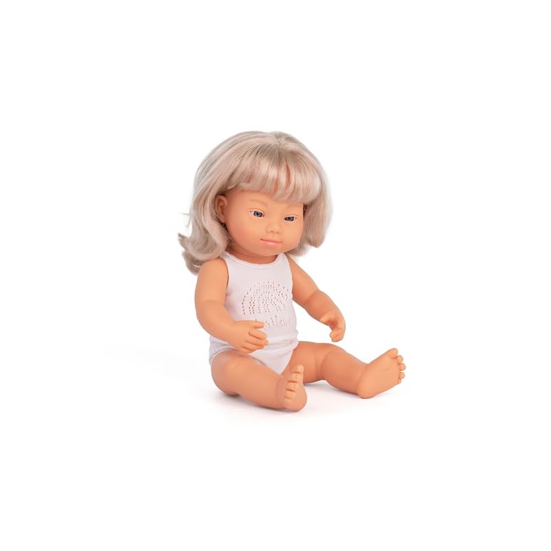 Miniland Doll 15'' Caucasian Blonde Girl with Down Syndrome (Box) - Made in Spain, Anatomically Correct, Quality