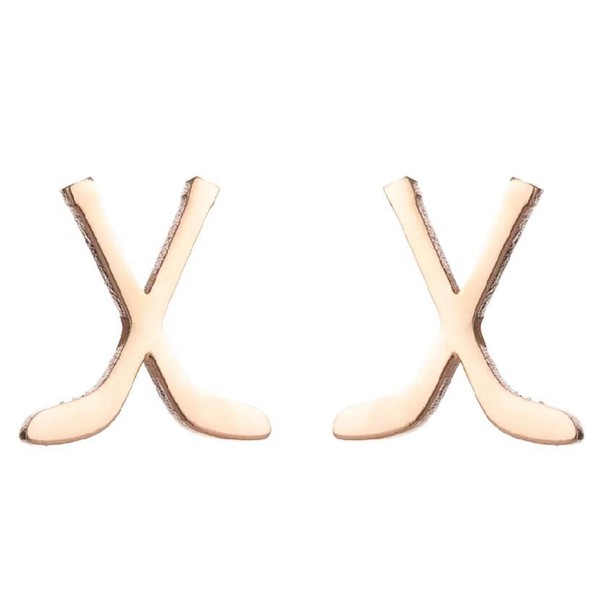 Minimalist Ice Hockey Stick Stud Earrings for Women Girls Men Stainless Steel Cartilage Small Studs Earring Fashion Sports Jewelry Gifts (Rose Gold)