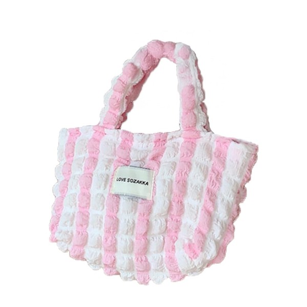 [miniministore] ミニトートバッグ ポップコーン軽量バッグ レディース 可愛い 英字ロゴ キルティング ハンドバッグ ぽこぽこ 韓国風 手提げかばん おしゃれ サブバッグバイカラー(ピンク,ワンサイズ)