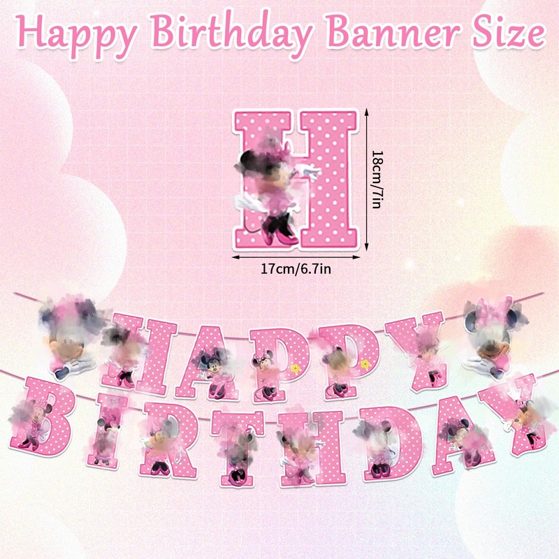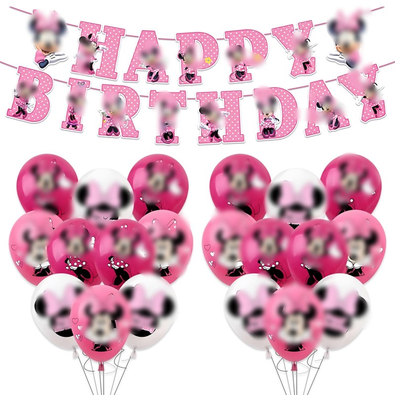 Minine Birthday Decorations, 1Pcs Happy Birthday Banner and 18Pcs Balloons, Theme Party Latex Balloons For Kids Girls Boys Party Decoration Supplies