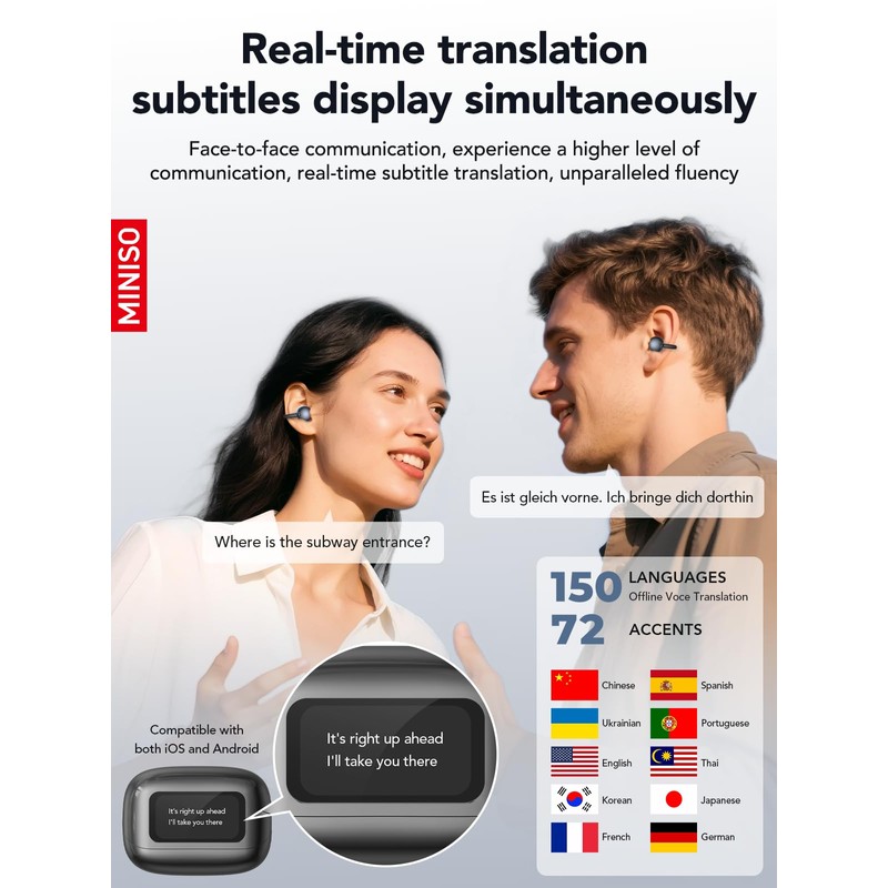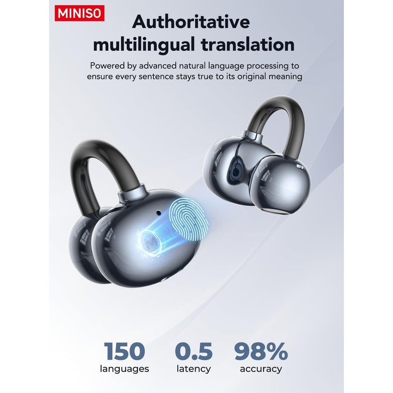 MINISO AI Translation Earbuds Real Time with LCD Touchscreen, 3-in-1 Language Translator Earbuds Supporting 150 Languages, Bluetooth 6.0, Clip-On Design & 60Hrs Playtime, Ideal for Travel & Business