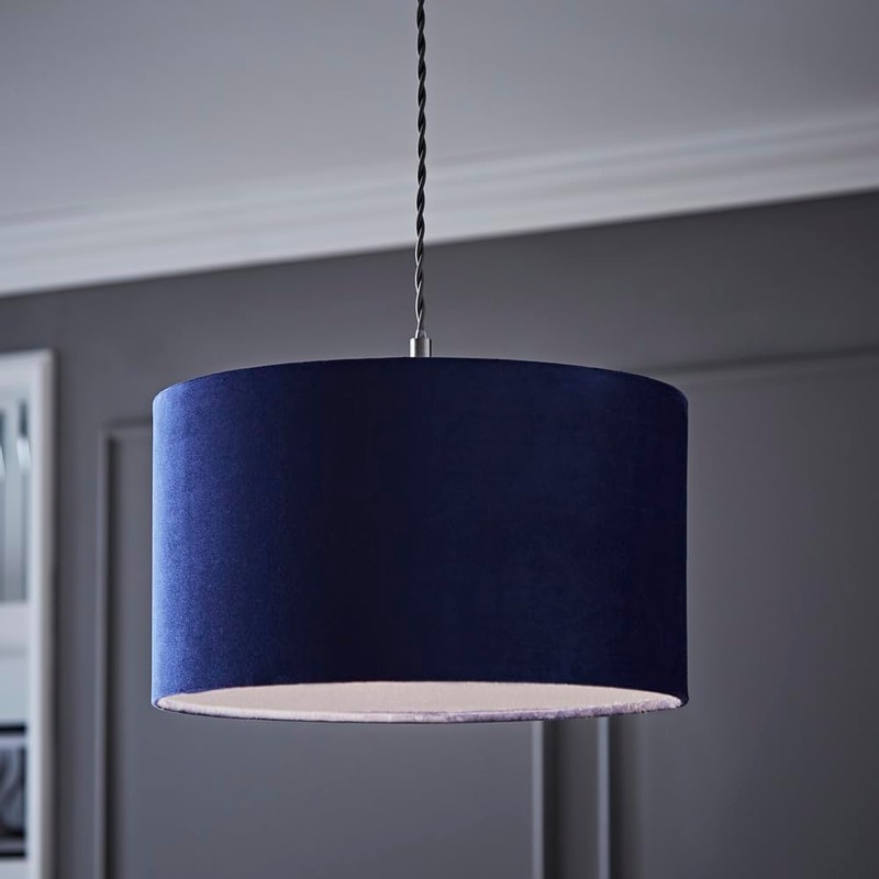 - LAMP SHADE - Update your living space with the latest trends in lighting with this Medium Modern Navy Blue Velvet Drum Light Shade. Mixing quality materials and stylish designs, our range of products are perfect for adding a modern style to your home.