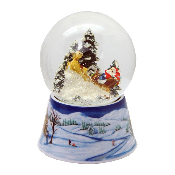 Minium Collection 20201 Snow Globe Santa in Sleigh on Base Nostalgic Snow Landscape Christmas Winter with Music Box - 100 mm Wide
