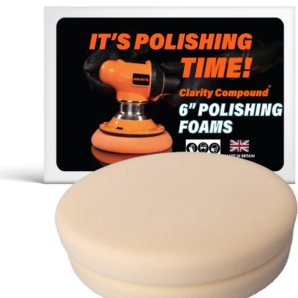 - Clarity Compound: White polishing pads are medium, designed for fast cutting, polishing, one-step glossing and defect removal. 6 inch (150mm) diameter with hoop & loop backing to the industry standard.