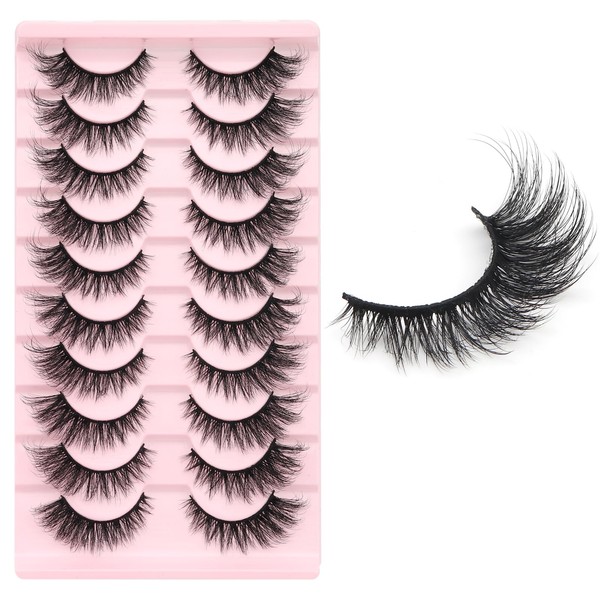 Mink Wispy Fluffy False Eyelashes – Cat Eye Lashes with 9D Volume and Extension-Like Effect – 10 Pairs