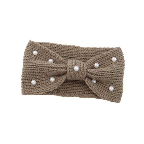 Minkissy 1pc Knit Woolen Headband Decor and Bowknot Cozy Winter Headwrap for Women Khaki for Outdoor Activities Like Riding and Camping