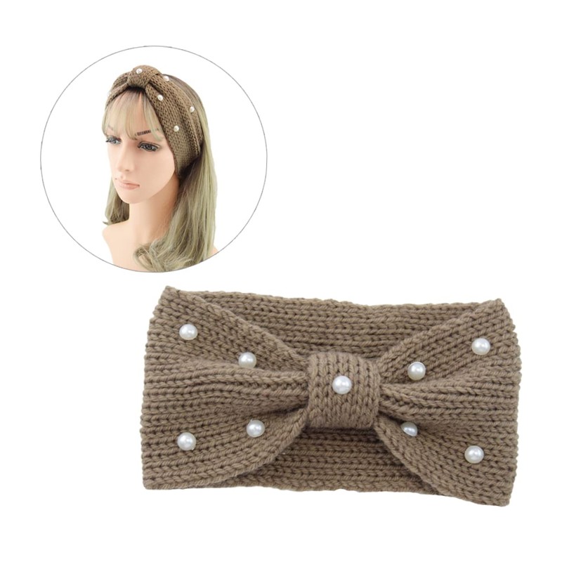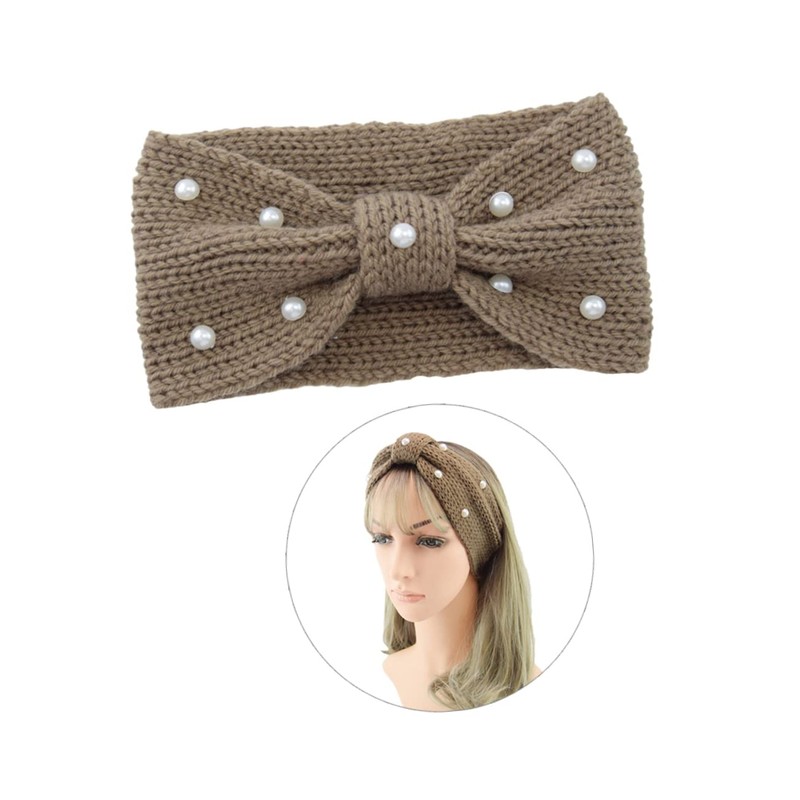 - A thick and cozy croched warm headband, featuring an fashion look Pearl Hair Band.