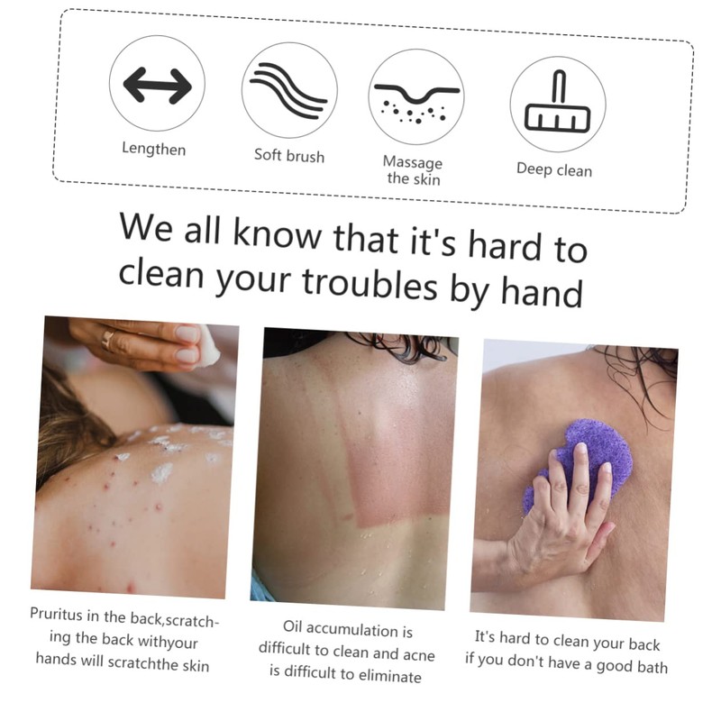 - The long strap makes it most of your body, it can help you clean your back when you take a bath bath scrubber.