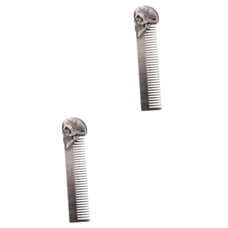 Minkissy 2pcs Household Zinc Alloy Beard Comb Portable Dual-sided Skull Design for Men Lightweight Hairdressing Accessory for Travel and Home Use Creates Clean Beard Styles