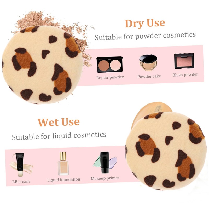 Minkissy 3pcs Facial Makeup Puff Soft Leopard Print Powder Puff for Home Beauty Salon Save Powder Random Color