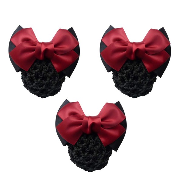 Minkissy 3Pcs Hair Snood with Flower Clip, Bowknot Mesh Bun Cover and Headdress for Women and Girls - Office and Casual Wear - Red