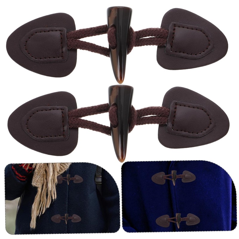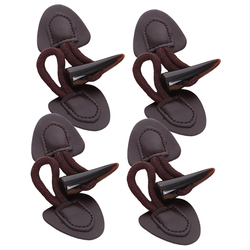 minkissy 4 Sets Imitation Horn Leather Buckle Toggle Closures for Sewing Toggles for Clothing Toggle Button Coat Buttons Brown Pu Leather