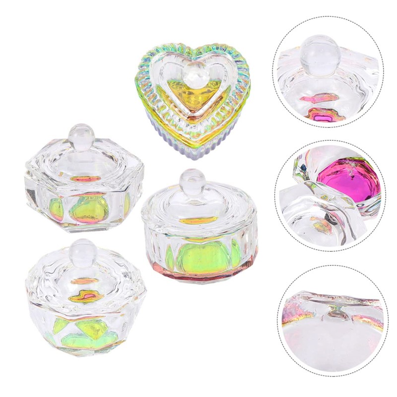 Minkissy 4pcs Glass Dappen Dish for Manicure Multi-shaped Acrylic Liquid Nail Cups Heart Panel for Mixing Nail Powder and Glitter Stylish and Portable