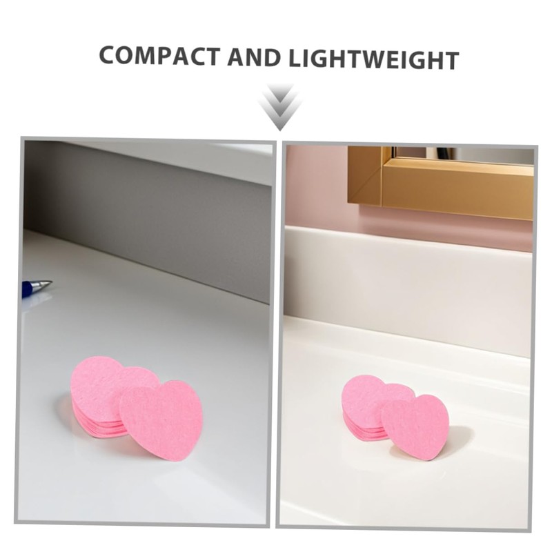 minkissy 60pcs Heart Shaped Compressed Facial Sponges Travel Friendly Exfoliating Cleansing Pads Portable Compressed Wood Pulp Cotton for Daily Skincare Routine Lightweight and Easy to Use
