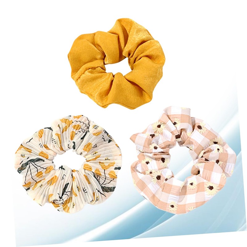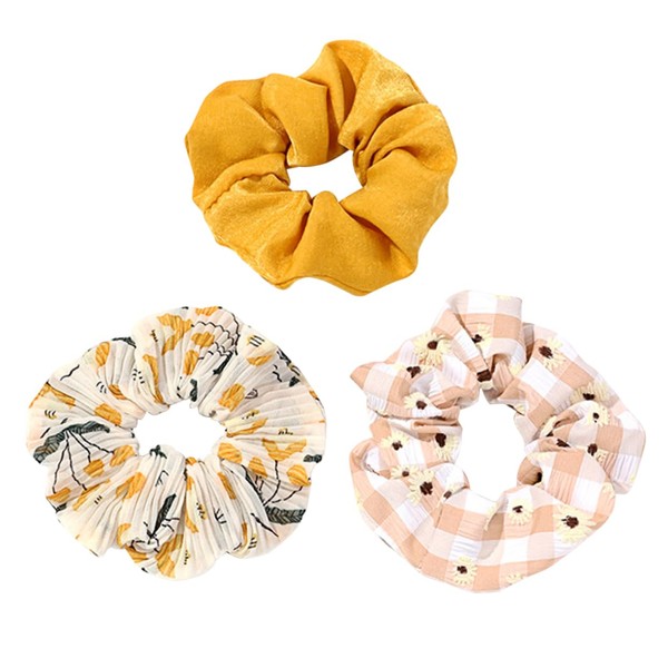 minkissy Chiffon Hair Scrunchies Set of 3 Floral Daisy Pattern Elastic Ponytail Holders for Women Soft Hair Ties for Everyday Use Random Styles