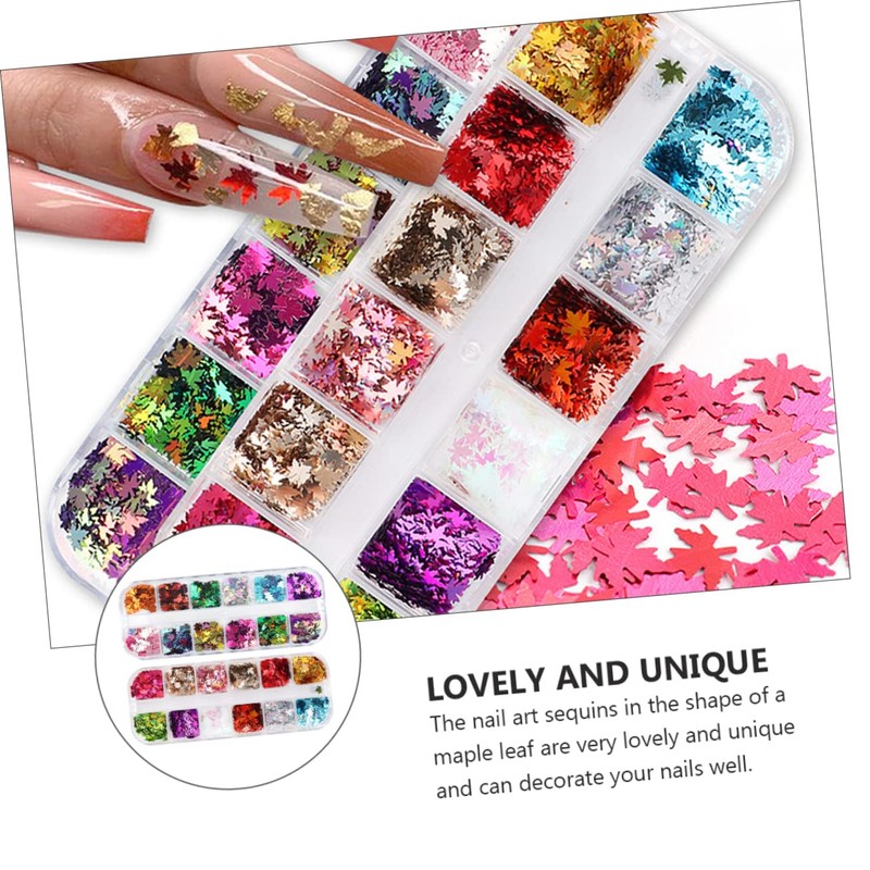 - There are a total of 2 boxes of maple leaf-shaped nail sequins, you can make your nail art as you like nail art stickers.