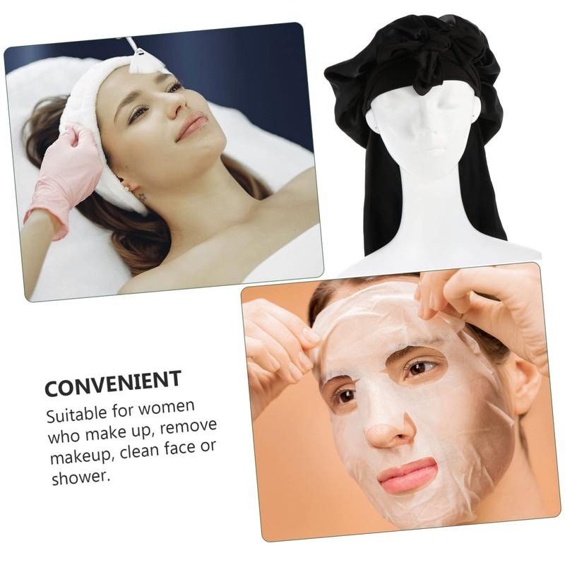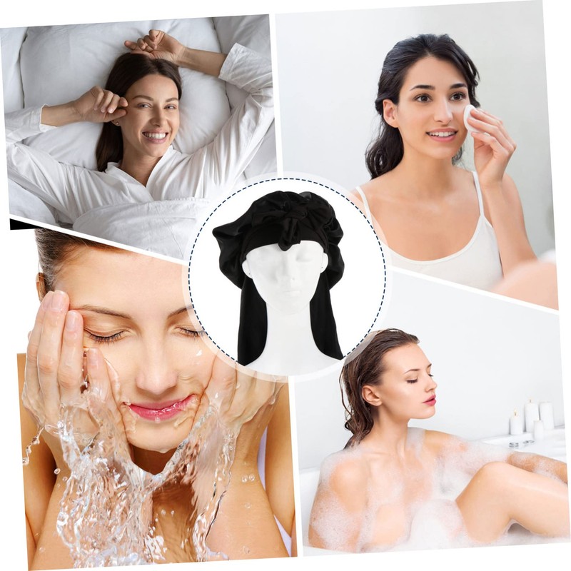 - Adopt satin material for durableuse Elastic Band Sleeping Cap.