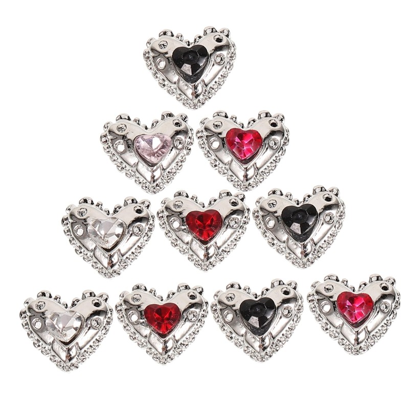 -Material:Alloy, rhinestone heart nail charms