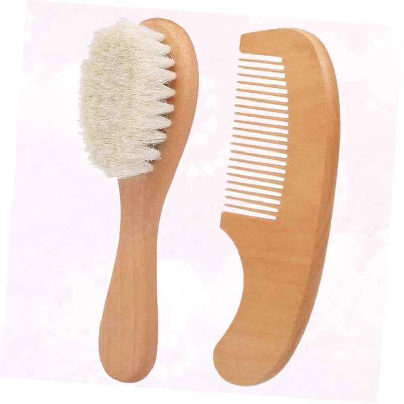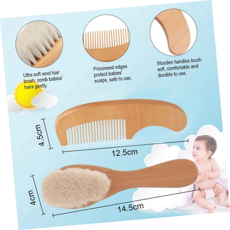 minkissy Practical Baby Brush Set 2-piece Comb and Brush for Bath Time Wooden Handle Safe and Gentle on Newborn Hair