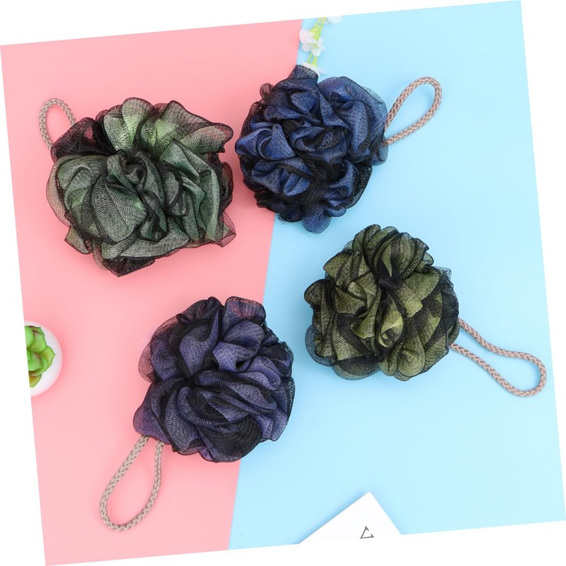 Minkissy Set of 4 Lace Bath Flowers Shower Balls Home Bath Balls Pe Material Mesh Design for Bubbles Non-slip