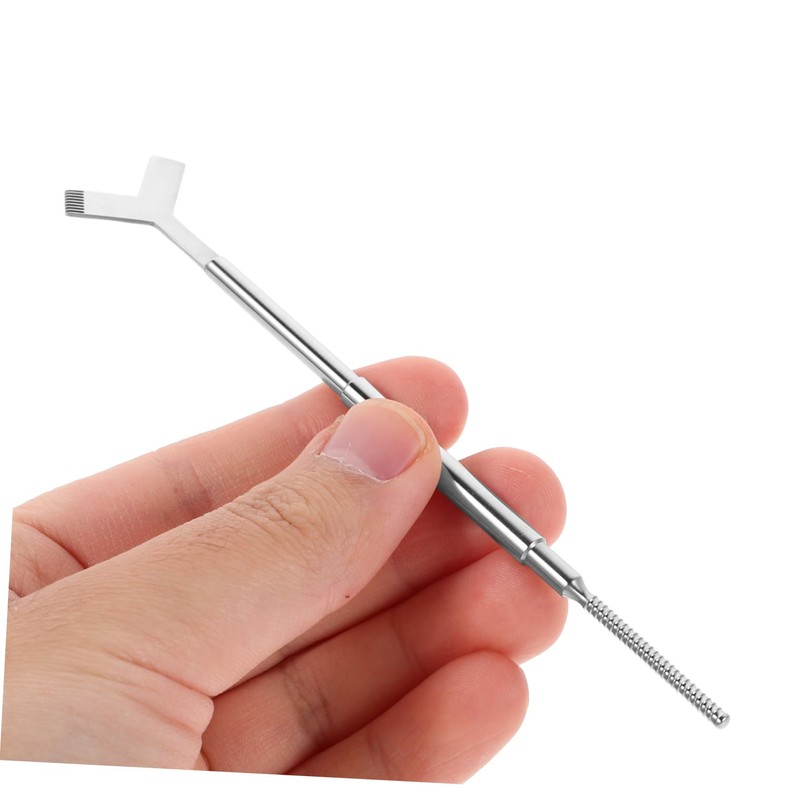 eyelash clump remover The stainless steel design ensures precision and durability, featuring shaped brush for smooth application, a comb to separate lashes, and a lifting stick for curls.y-shaped eyelash brush Ideal for achieving a polished, professional or in the salon.lash tweezer Transform your eyelash routine with this comprehensive tool that combines three essential functions