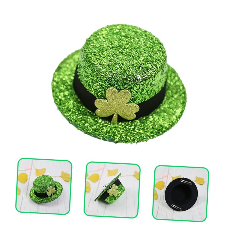 Minkissy Top Hat Hairpin 3-leaf Patrick's Day Party Accessory Elegant Festival Headdress