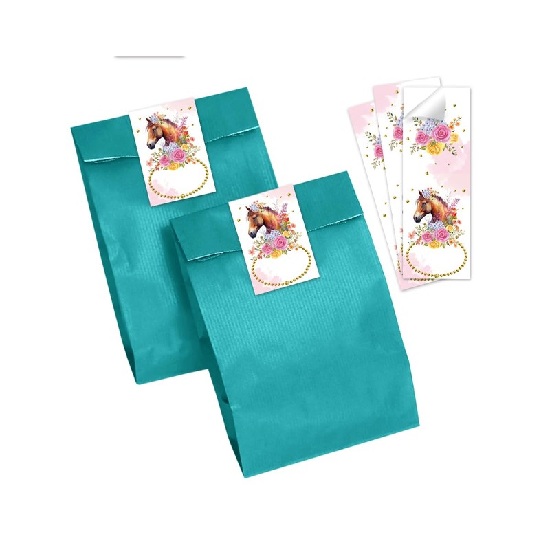 Minkocards 12 Invitation Cards for 9th Children's Birthday Girls Horse Invitation Ninth Birthday Includes 12 Envelopes, 12 Party Bags / Petrol Blue, 12 Stickers and 12 Bookmarks Invitation Set