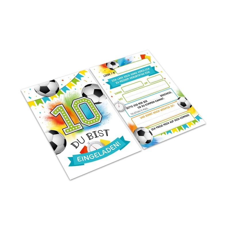 Minkocards 12 Invitation Cards with 12 Envelopes for 10th Children's Birthday Boy Football Invitations for Tenth Birthday Children's Invitation Set