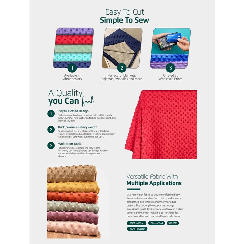 Minky Dimple Dot 60 Inch Soft Plush Polyester Microfiber Cuddle Fabric by The Yard - for Sewing Apparel, Accessories, Decor, and More (Blush, 1 Yard)