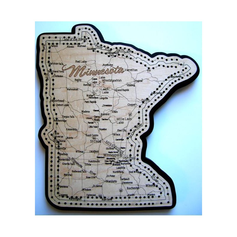 Minnesota State Shape Road Map Cribbage Board