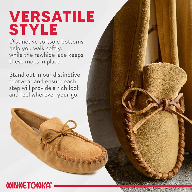 • VERSATILE STYLE: Distinctive softsole bottoms help you walk softly, while the rawhide lace keeps these mocs in place; Stand out in our distinctive footwear and ensure each step will provide a rich look and feel wherever your go