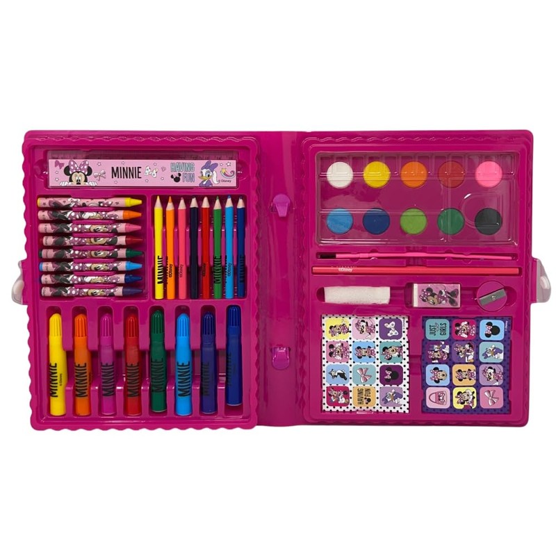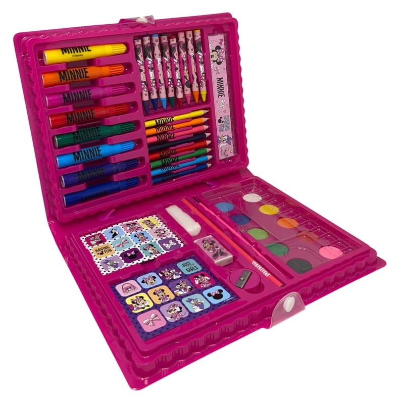 - Let your imagination run wild with this adorable 65-piece stationery case from Disney, Minnie Mouse and the cute Figaro cat! Perfect for little artists, this colourful case combines everything you need to draw, colour and design with a cheerful and feminine design that captures every girl's heart.