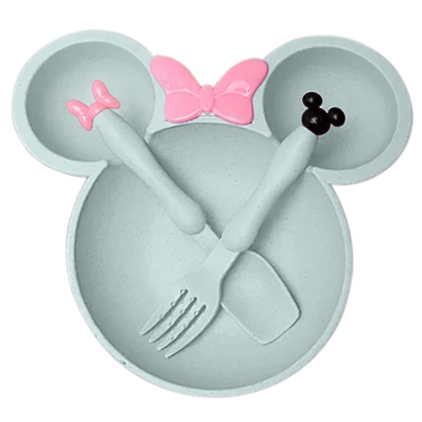 Minnie Kids Dinnerware Kids Dinnerware Set 3 Piece Plastic Spoon Fork Kids Toddler Plate Bowl Dinnerware Plate Set (Green)
