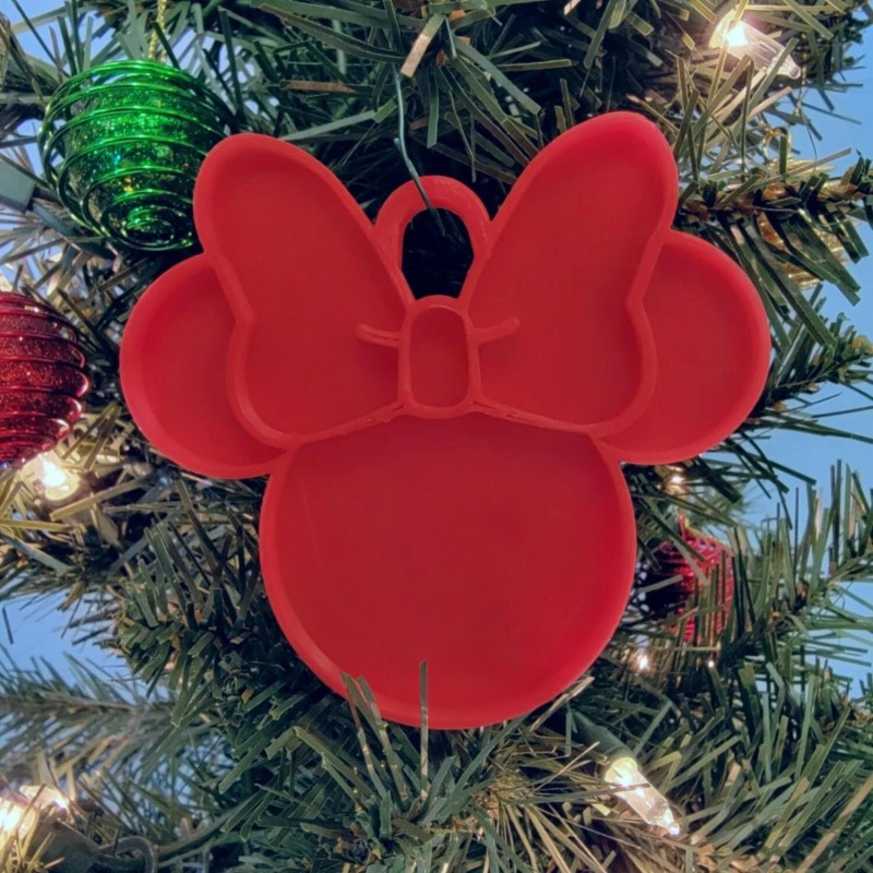 MINNIE MOUSE THEMED FACE EARS SHAPE RED CHRISTMAS ORNAMENT MADE IN USA PR4882