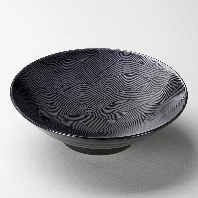 - Traditional Japanese motif brings sophistication to this lovely serving bowl. Silver color wave pattern in black bowl