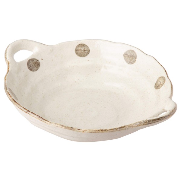 Mino Ware K52019 Polka Dot White Karatsu Large Pot with Both Hands